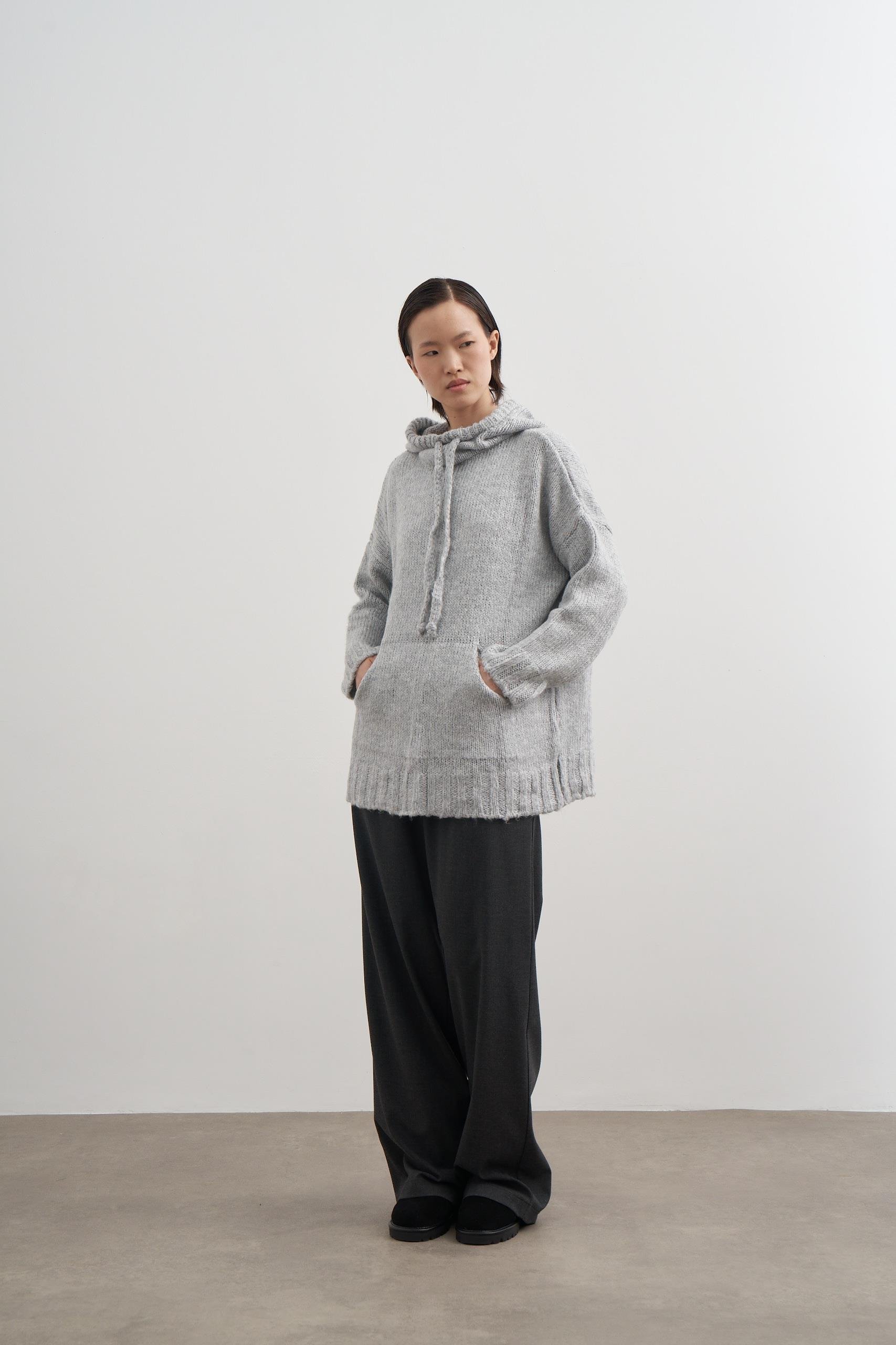 Kapüşonlu Oversize Kazak - Gri (3551-Gri)